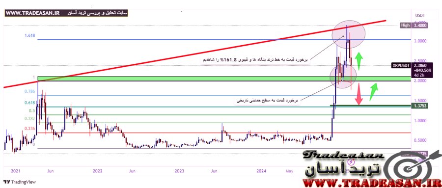 ریپل با نماد اختصاری XRP یک ارز دیجیتال یا شکلی از دارایی دیجیتال است که با ارزش بازار حدود ۱۴۱.۹۵ میلیارد دلار، در رتبه ۴ بازار قرار داشته و دامیننس ریپل در حال حاضر ۴.۴۳ درصد است. هر واحد از ریپل در این لحظه با قیمت ۲.۴۵ دلار، با احتساب نرخ تتر ۸۵,۵۷۴ تومان معادل ۲۱۰,۵۱۰ تومان معامله می شود و حجم مبادلات روزانه آن ۹.۴ میلیارد دلار است. اکنون در ادامه مطلب ابتدا با نقاط خروج بزرگان بازار و بنگاه های بزرگ مالی بر روی ارز دیجیتال ریپل آشنا می شویم و با نگاهی عمیق به روند ریپل ، تحلیل روزانه و نقاط ورود و خروج جهت ترید را بررسی خواهیم کرد .