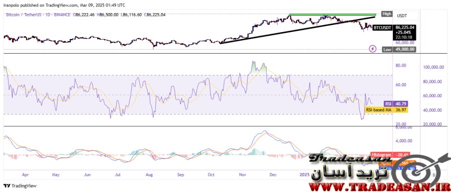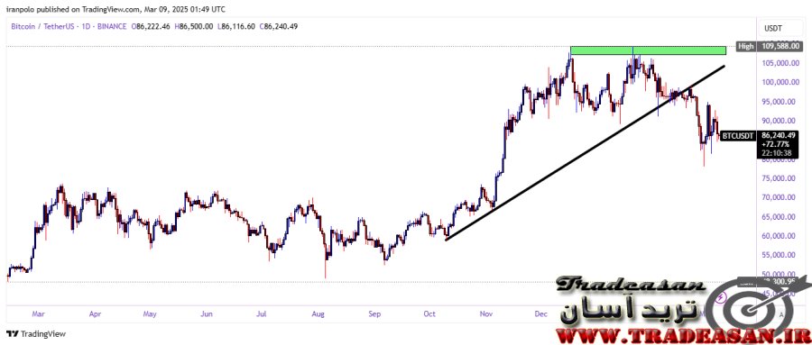 • نوسان بین ۸۵,۰۰۰ تا ۸۸,۰۰۰ دلار → انتظار برای تصمیم بازار!